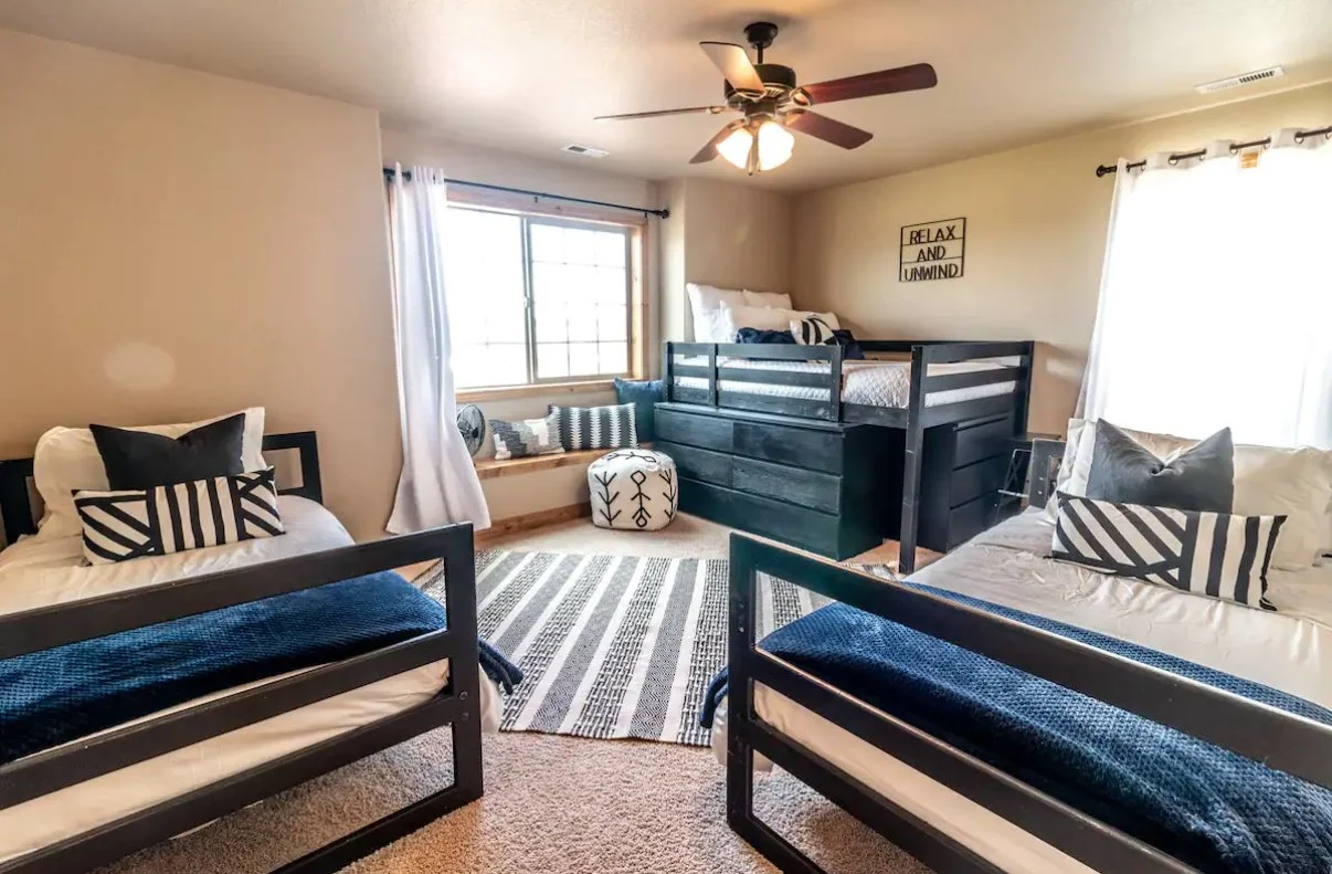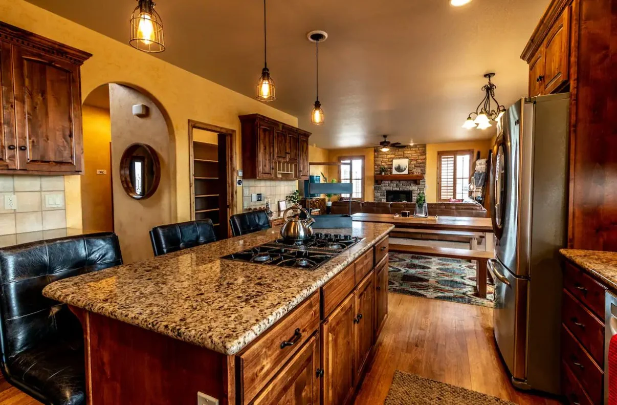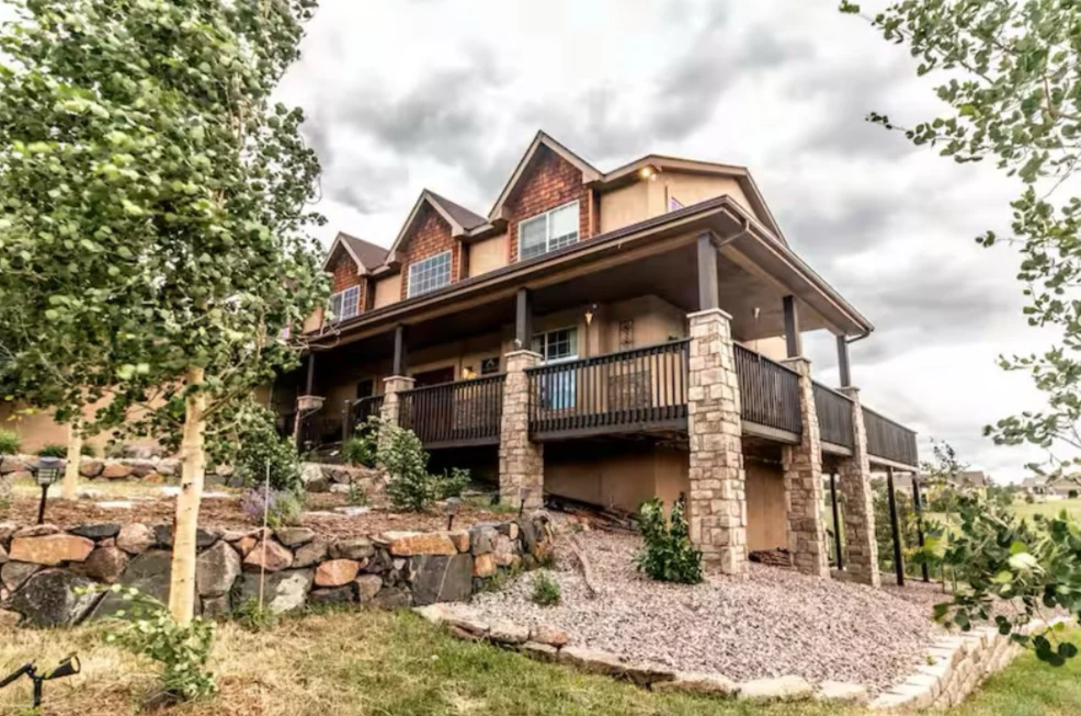 Just 25 minutes from downtown Colorado Springs and an hour from Denver, it offers the perfect blend of luxury and tranquility. Inside, you’ll find cabin-style elegance with stone fireplaces, a wrap-around deck, a cozy firepit, and inviting communal spaces—including a game room and private theater for relaxed evenings.